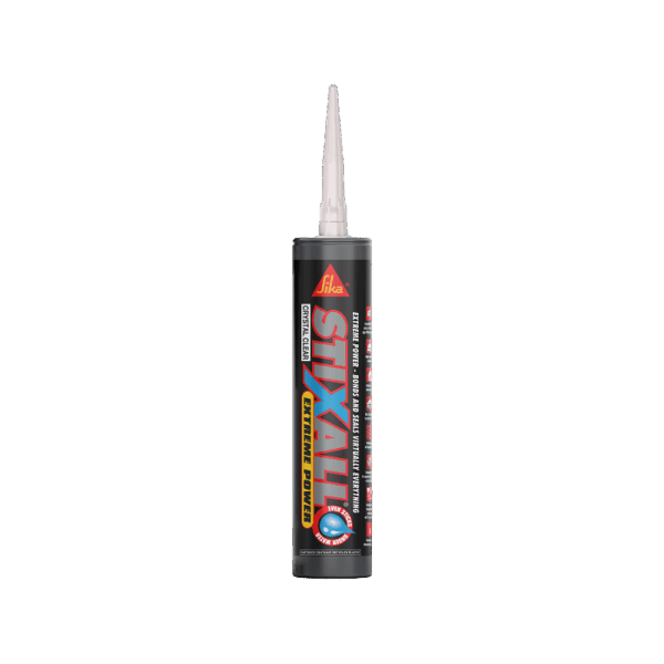 Sika StixAll Extreme Power Crystal Clear is a one-part, moisture-curing adhesive and sealant that combines the best qualities of silicone and polyurethane technologies. It’s considered “extreme power” due to its incredible initial grab, no-slip properties, high bonding strength, and ability to bond and seal virtually anything to anything in nearly all conditions, including wet surfaces.