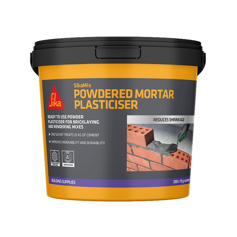 Simply add one 15 g sachet per 25 kg of cement directly into your mortar or render mix. Mix as normal to achieve the best plasticising effect.
